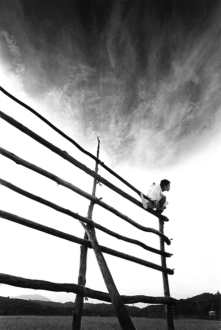 "鎌鼬"とは小さなつむじ風の中心部が真空状態になり、そこに触れた皮膚に突然鎌で切られたような傷ができる現象を指し、両腕に鋭い鎌を持ったイタチに似た妖怪として伝えられています。舞踏家 土方巽を被写体とした「鎌鼬」は1965年より撮影を始め、土方の故郷である秋田に加え、東京の柴又、巣鴨など、戦後の細江の軌跡を沿うような場所にまでも撮影地を拡張し、1969年に写真集として刊行されました。撮影は、自らの原型を故郷に見出そうとしていた土方に鎌鼬のイメージを重ね、また細江自身が忘れかけていた山形における疎開時の体験を、「東京での生活の戦後の体験と疎開の体験、そして焼け跡、今の経済繁栄、そして、この平和、このままどこへ行ってしまうのだろう」(「細江英公に聞く」、『季刊写真映像』1号、1969年)という思いのなかで確認しようとする行為でもありました。東北の血と風土を共有する土方の肉体を媒体として「私の『記憶』を『記録』する」(細江英公「鎌鼬」、『写真・細江英公の世界』、写真・細江英公の世界展実行委員会、1988年)、被写体との関係性から紡ぎ出された物語性の強い作品となっています。