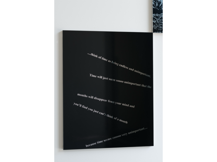 (End Paper, Two Views)は、鏡の様な表面に古書の奥付頁のプロト・サイケデリックなパターンや、古いポストカードから見つけたイメージを定着させ、反射された鑑賞者との近藤を呼び起こします。