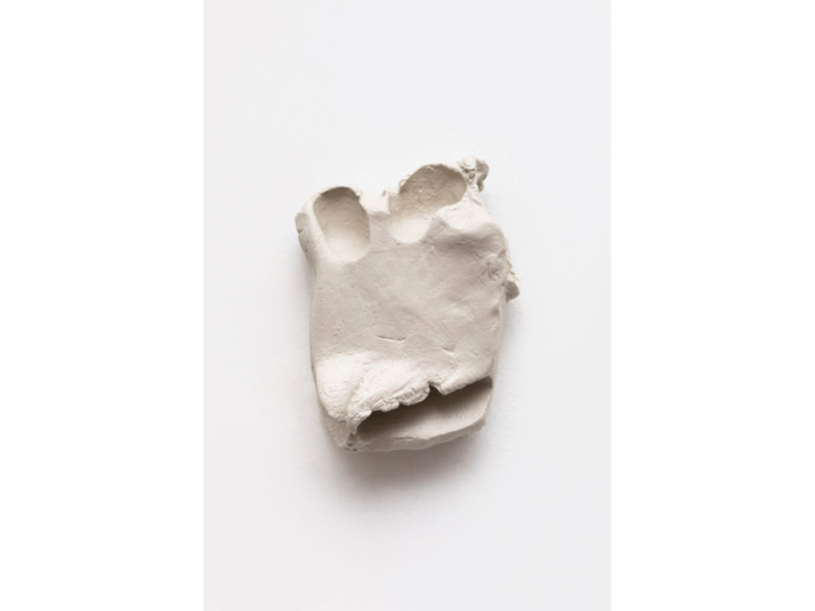 ピンク、オレンジ、ブルー、イエローなどの鮮やかな色面に、ところどころの絵具の盛り上がりが物質の存在を表出させるペインティング。ぐにゃりと崩れ落ちそうな粘土を上から押し付け、ブロンズやアルミに鋳造した立体作品。